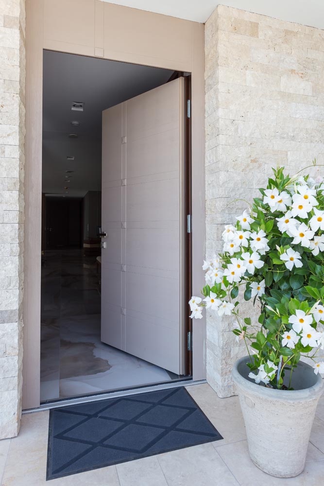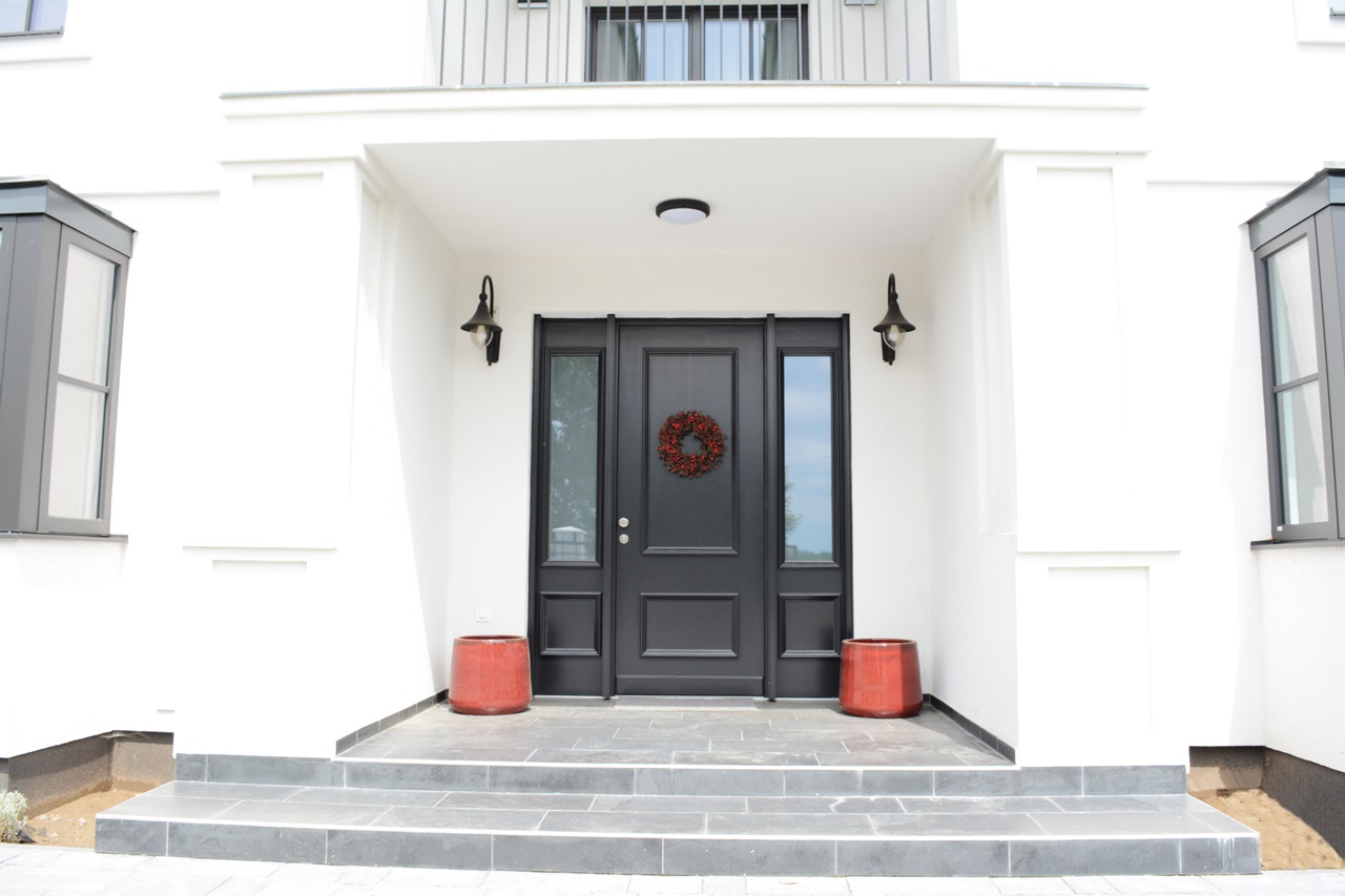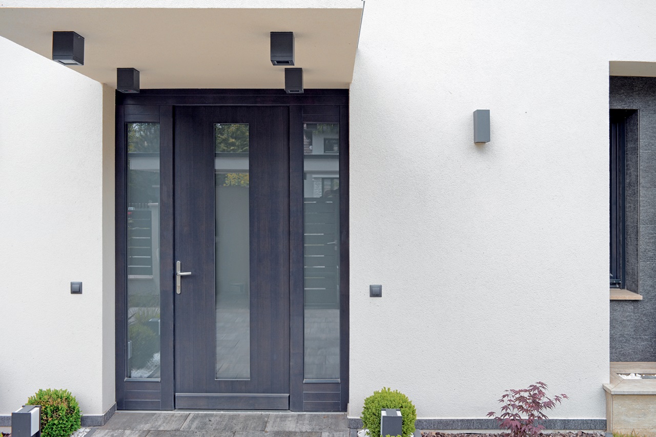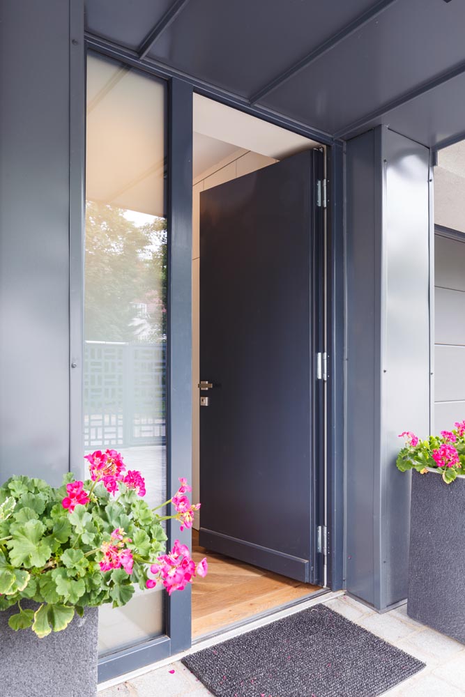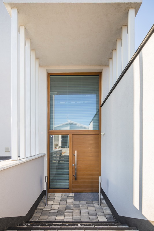A FA-ALU termékcsalád lapajtói kifejezetten ajánlottak főbejárati ajtóként való használatra harmonikus kinézetük és speciális műszaki jellemzőik miatt.