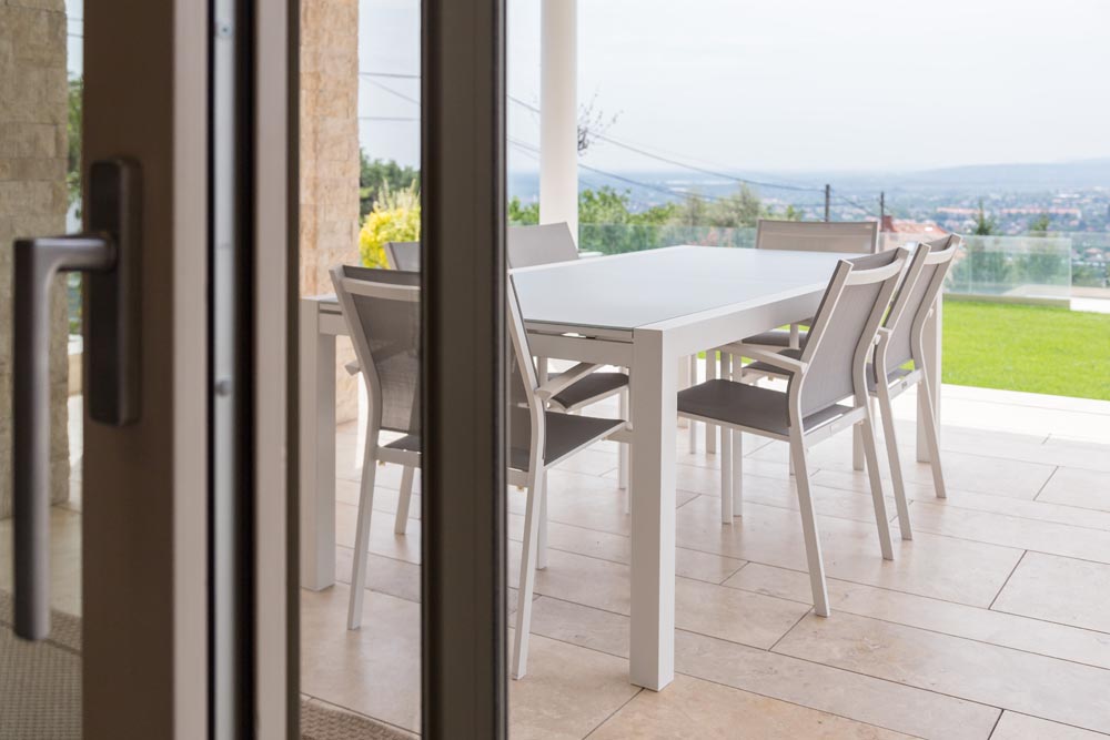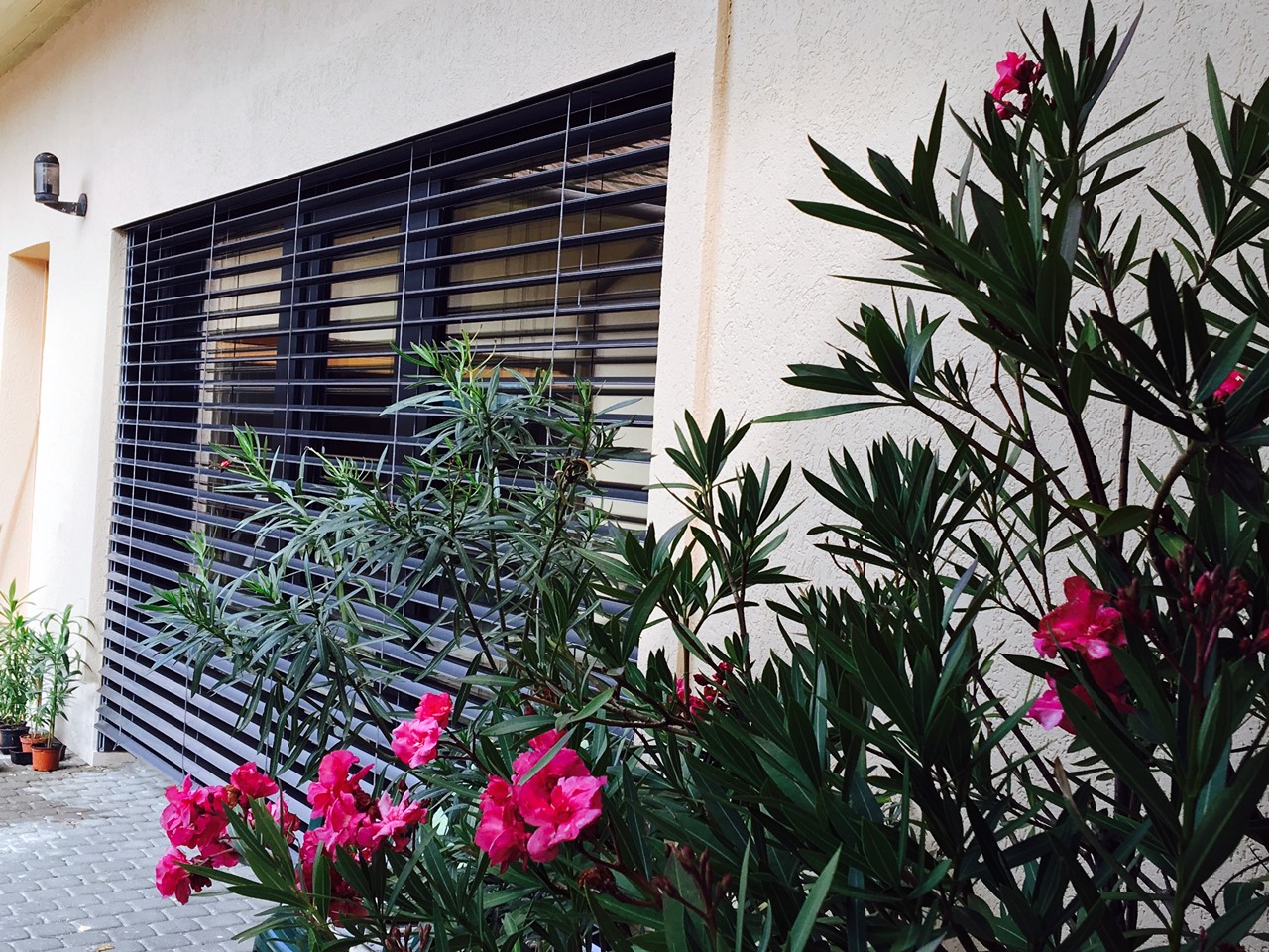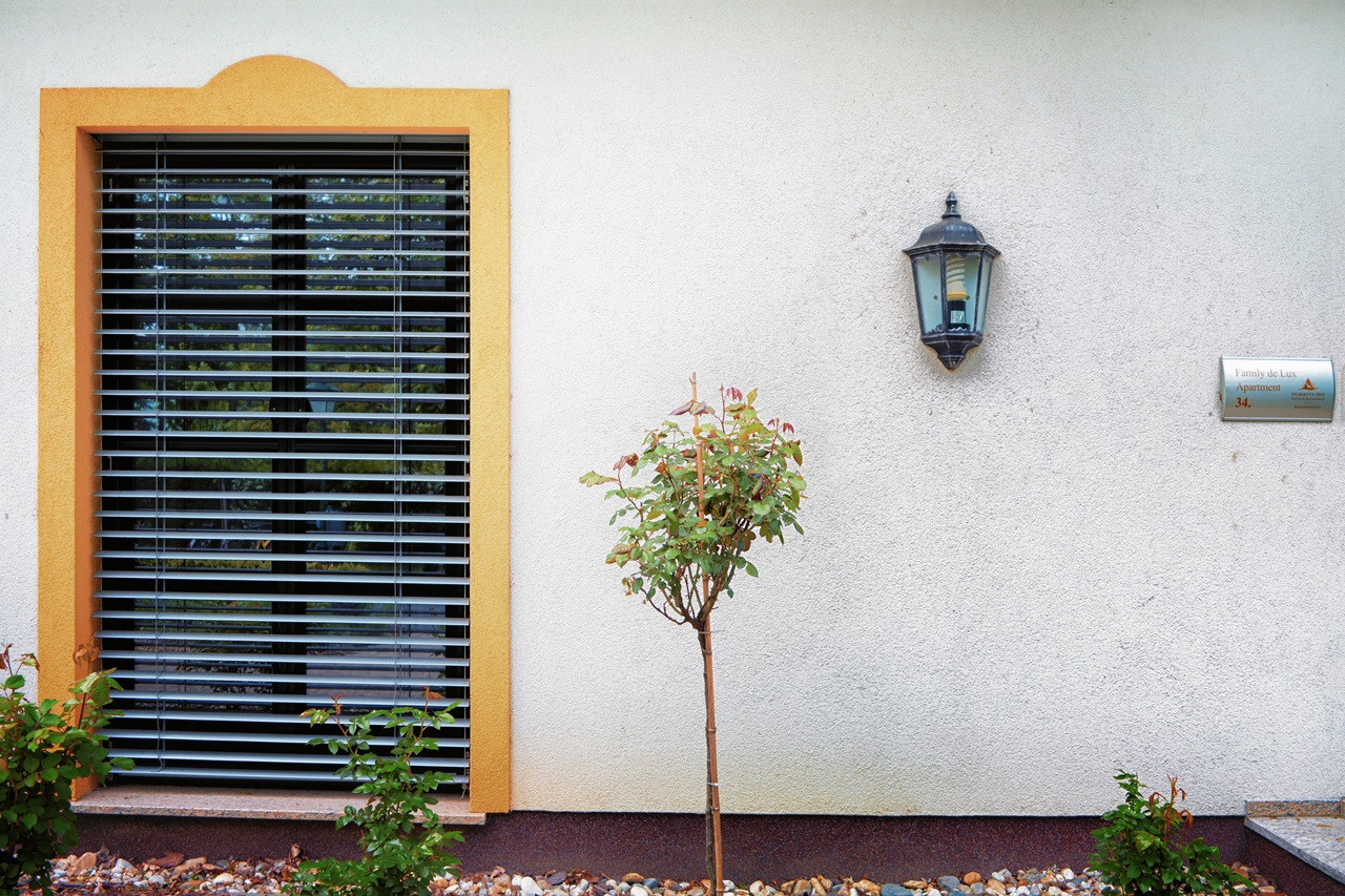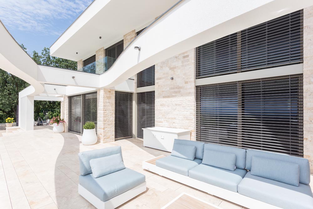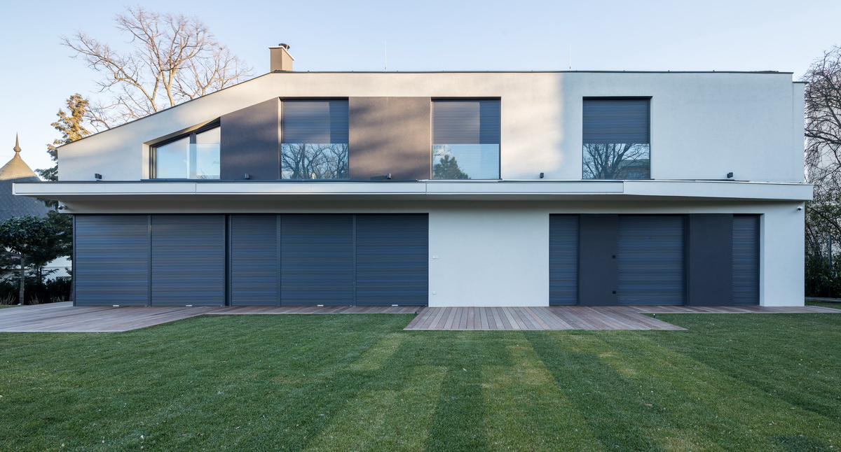 Элементы конструкции также можно выбрать в соответствии со стилем дома: ролеты с внешней коробкой, установленной вверху проёма, или со скрытой внутренней с автоматическим или ручным подъёмом из пластика или алюмитния.